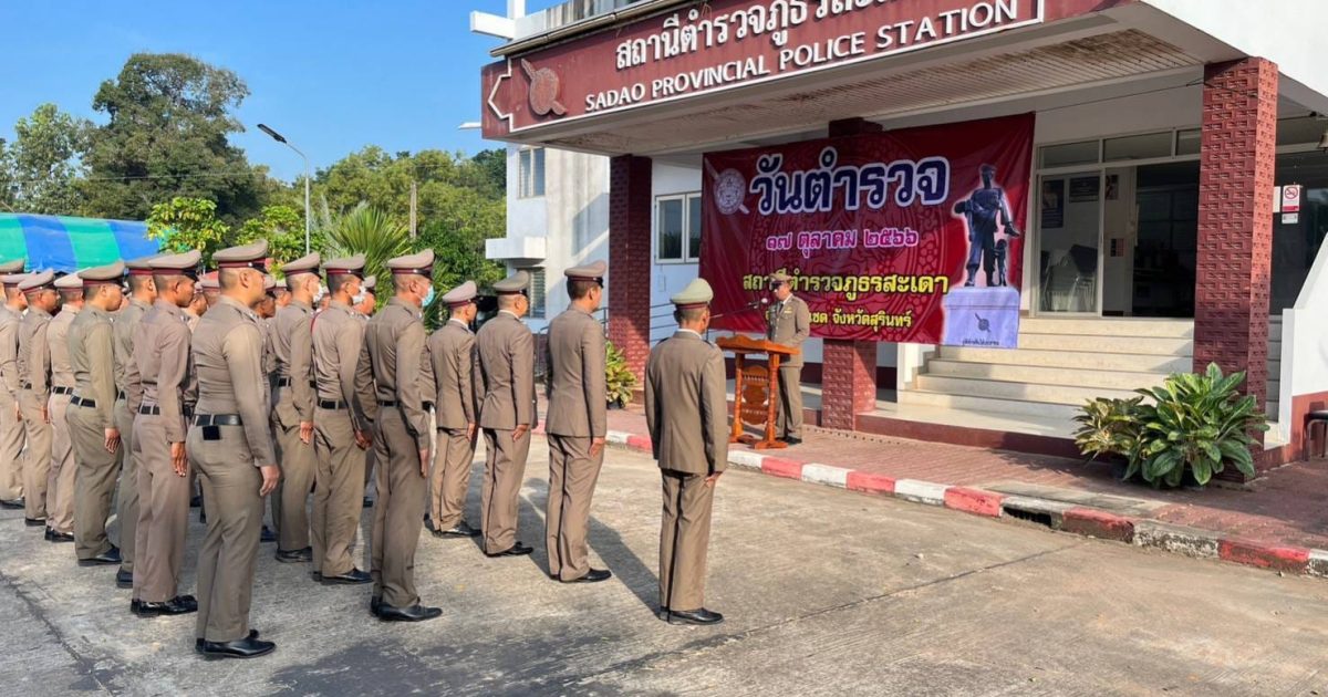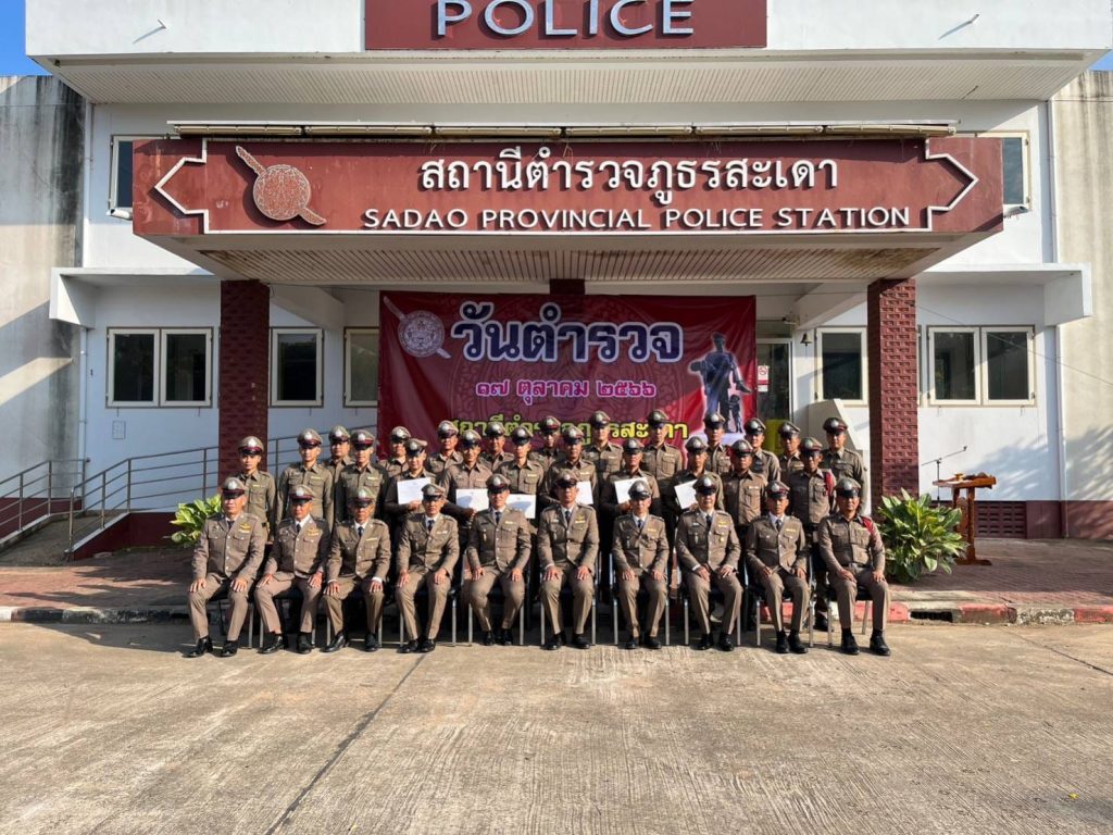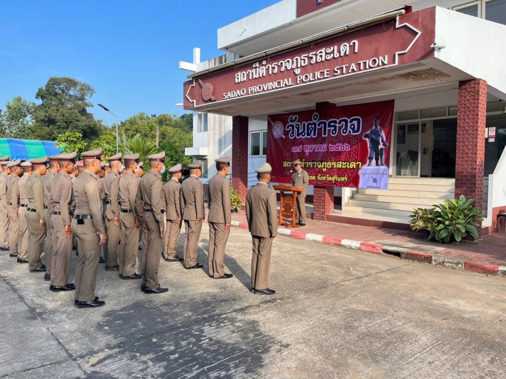 กิจกรรมวันตำรวจ 17 ตุลาคม 2566 10 มีนาคม 2567 โดย admsadaosurin / ข่าวประชาสัมพันธ์,ข่าวกิจกรรม วันที่ 17 ตุลาคม 2566 พ.ต.ท.สุรัตน์ คลายทุกข์ สวญ.สภ.สะเดา พร้อมด้วย นายเจตน์จง ชุ่มมาก ประธาน กต.ตร.สภ.สะเดา,ข้าราชการตำรวจ สภ.สะเดา ,น.ส.เพลินทิพย์ ทนงใจ ปลัดอำเภอบัวเชด, นางปรีดาภรณ์ อ่อนน้อม ผญบ.ตาปัน และพี่น้องชาวบ้านตาปัน,คณะแม่บ้านข้าราชการตำรวจ ร่วมจัดกิจกรรมเนื่องในวันตำรวจ 2566 ดังนี้ • เวลา 07.30 น. พิธีเซ่นไหว้ศาลพระภูมิเจ้าที่ ศาลตายาย หน้า สภ.สะเดา • เวลา 08.00 ข้าราชการตำรวจ สภ.สะเดา เคารพธงชาติ ,กล่าวอุดมคติ , กล่าวคำปฏิญานตน, อ่านสาร ผบ.ตร., มอบใบประกาศเกียรติเเก้ข้าราชการตำรวจที่มีผลการปฏิบัติงานดีเด่น • เวลา 09:00 น. พิธีเจริญพระพุทธมนต์,ทำบุญตักบาตร และถวายภัตราหารแด่พระภิกษุสงฆ์ FacebookFacebookXXLINELine