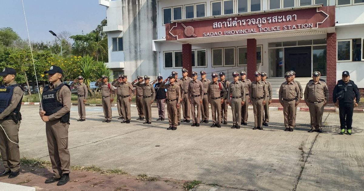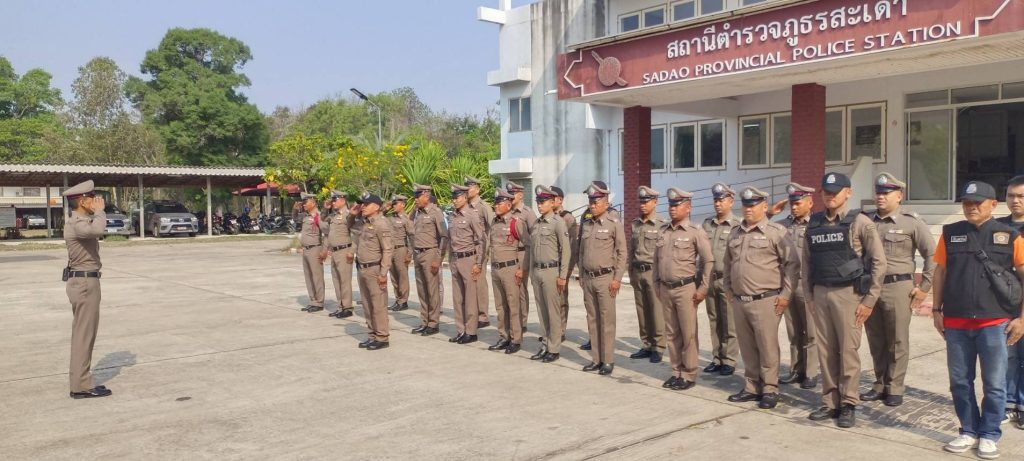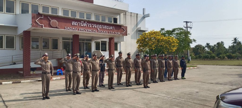 กิจกรรมเข้าแถวเคารพธงชาติ 28 มีนาคม 2568 โดย admsadaosurin / ข่าวประชาสัมพันธ์,ข่าวกิจกรรม วันที่ 18 มีนาคม 2568 เวลา 08.00น. พ.ต.ท.นิธิรุจน์ ชัยรัฐนิธิยศสวญ.สภ.สะเดา พร้อมข้าราชการตำรวจ สภ.สะเดา จังหวัดสุรินทร์ เข้าแถวเคารพธงชาติ สวดมนต์ไหว้พระ,กล่าวอุดมคติตำรวจ วิสัยทัศน์ผบ.ตร., วิสัยทัศน์ผบช.ภ.3 และดำเนินกิจกรรมดังนี้– กิจกรรมสวดมนต์เจริญจิตตภาวนาฯ– ตรวจการแต่งกายให้ถูกต้องตามระเบียบ– ประชุมชี้แจงข้อราชการประจำสัปดาห์– ฝึกทบทวนประจำสัปดาห์ โดยท่าบุคคลมือเปล่า– กำชับข้าราชการตำรวจป้องการการทุจริต/การรับสินบน FacebookFacebookXXLINELine