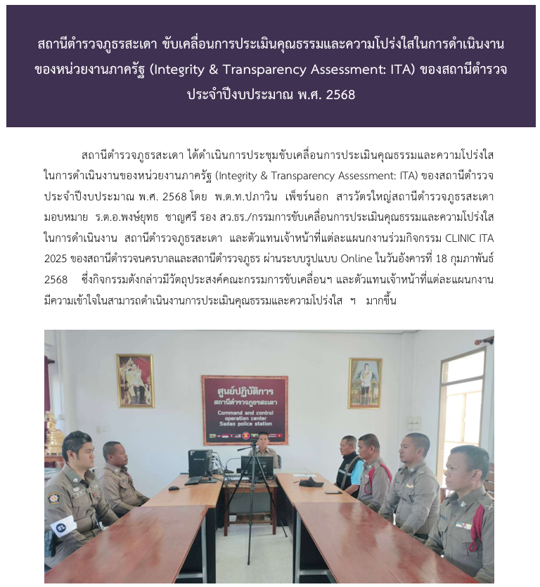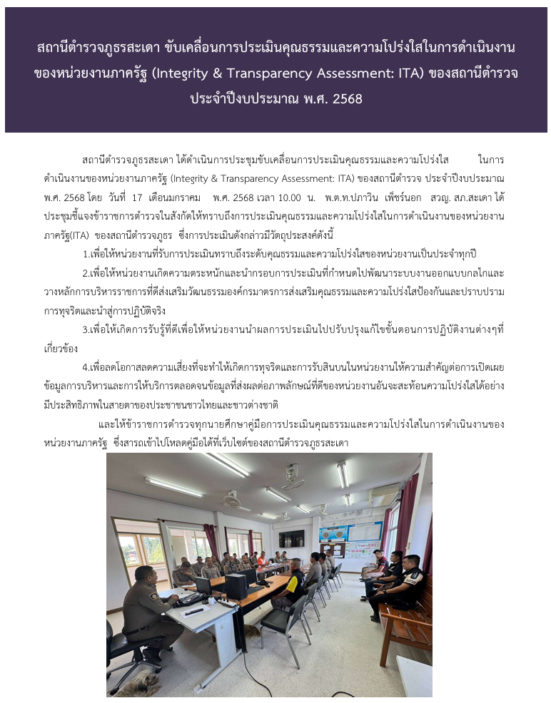 ประชาสัมพันธ์ข้อมูลการประเมินคุณธรรมและความโปร่งใสในการดำเนินงานของหน่วยงานภาครัฐ(Integrity & Transparency Assessment: ITA)