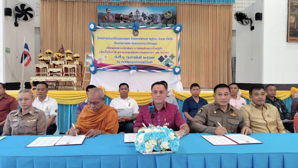 วันนี้ 6 กุมภาพันธ์ 2567 เวลา 10.30 น. พ.ต.ท.ปภาวิน เพ็ชร์นอก สวญ.สภ.สะเดา ภ.จว.สุรินทร์ ร่วมลงนามบันทึกข้อตกลงความร่วมมือ (MOU) ขับเคลื่อนการดำเนินงานโครงการรณรงค์ป้องกันและแก้ไขปัญหายาเสพติด TO BE NUMBER ONE ของอำเภอบัวเชด ณ หอประชุมโรงเรียนบัวเชดวิทยา อ.บัวเชด จว.สุรินทร์ โดย นายสมชาย วงศ์จริยะเกษม นายอำเภอบัวเชด เป็นประธานในพิธี ผู้ร่วมลงนามบันทึกข้อตกลงความร่วมมือ ประกอบด้วย ผู้แทนคณะสงฆ์อำเภอบัวเชด, หัวหน้าส่วนราชการ,ฝ่ายปกครองอำเภอบัวเชด, องค์กรปกครองส่วนท้องถิ่น, กำนัน ผู้ใหญ่บ้าน ผู้นำชุมชนทุกหมู่บ้านร่วมกิจกรรม