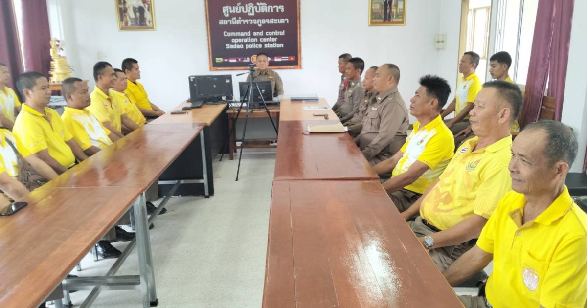 เฝ้าฟังการประชุม VDO Conference การมอบนโยบายแนวทางการปฏิบัติราชการของ พล.ต.อ.กิตติ์รัฐ พันธุ์เพ็ชร์ ผบ.ตร. ณ ห้องประชุม ดำเนินกิจกรรมจิตอาสาพัฒนาสถานที่ราชการ ตัดหญ้า ปรับบริบทด้านหน้า สภ.สะเดา