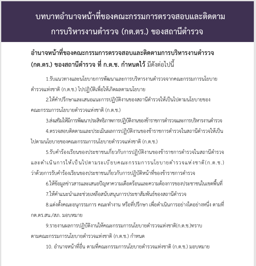 O4 : ข้อมูลคณะกรรมการตรวจสอบและติดตามการบริหารงานตำรวจ(กต.ตร.)ของสถานีตำรวจ