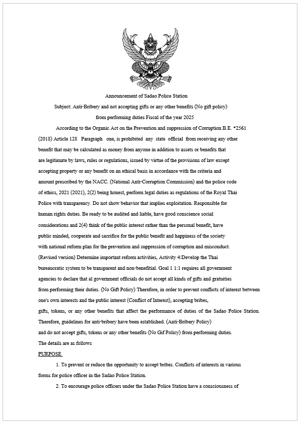 O18 : ประกาศนโยบายต่อต้านการรับสินบน(Anti-Bribery Policy)