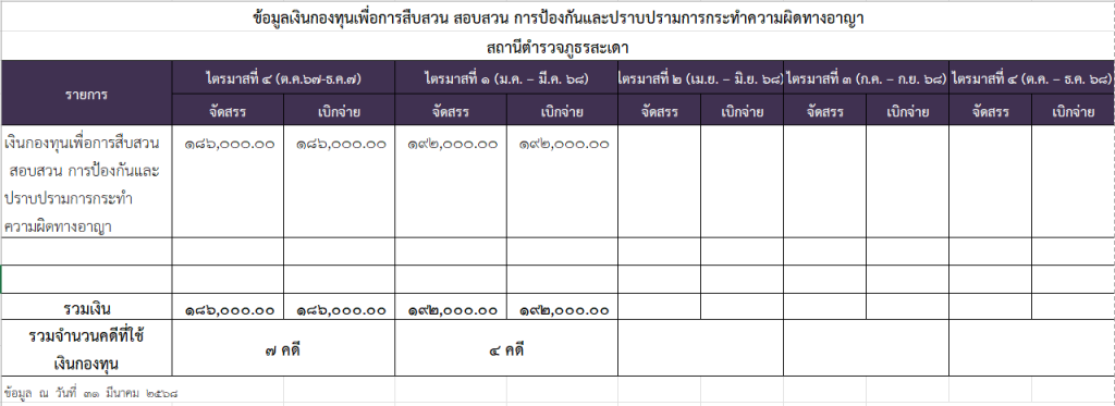 O13 : ข้อมูลเงินกองทุนเพื่อการสืบสวน สอบสวน ป้องกันและปราบปรามการกระทำความผิดทางอาญา